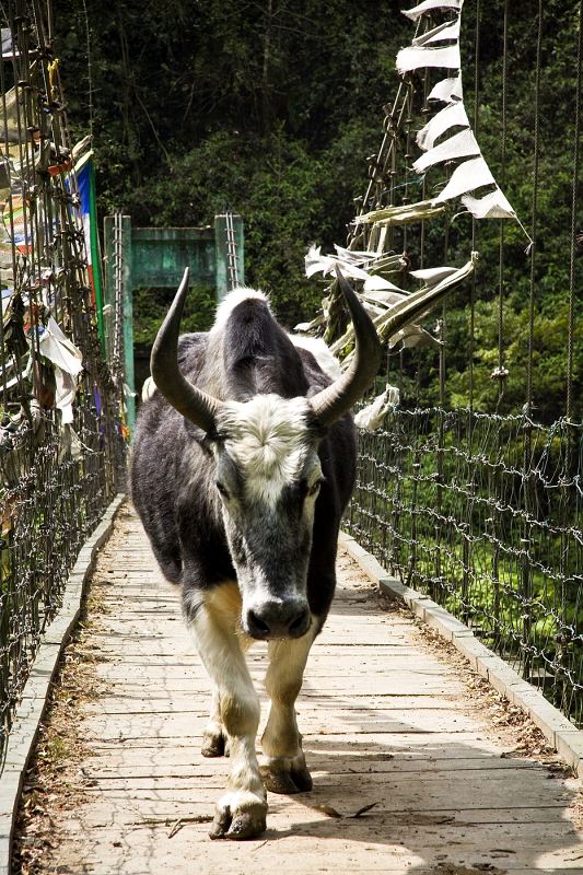 Na trek si najímáme průvodce – sami se zde totiž pohybovat nemůžeme, na trase procházíme i několika vojenskými kontrolami. S naším mladým průvodcem Sangayem hned navazujeme přátelský vztah, díky němuž se dostáváme i na místa, která nejsou běžnému turistovi až tolik přístupná. A následně se nám nabízí, že s námi absolvuje i náš hlavní cíl – Goechala trek. Ten už ale, stejně jako ostatní skupiny, uskutečňujeme v doprovodu jaků, nosičů a kuchaře.